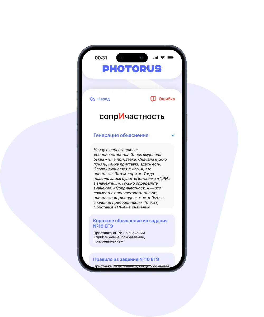Русский язык – один из самых сложных в мире. Мы создали точный и эффективный инструмент для его изучения и подготовки к экзаменам. PhotoRus гарантирует качество и детальность ответов и объяснений, помогая вам учить русский без ошибок.
